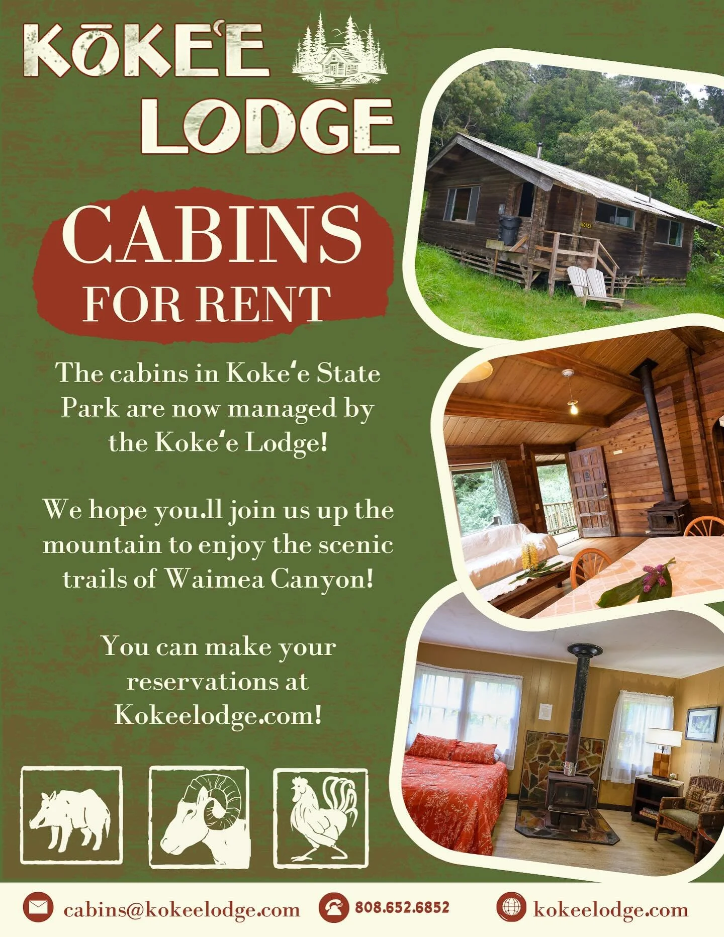Email | cabins@kokeelodge.com Phone | 808.652.6852