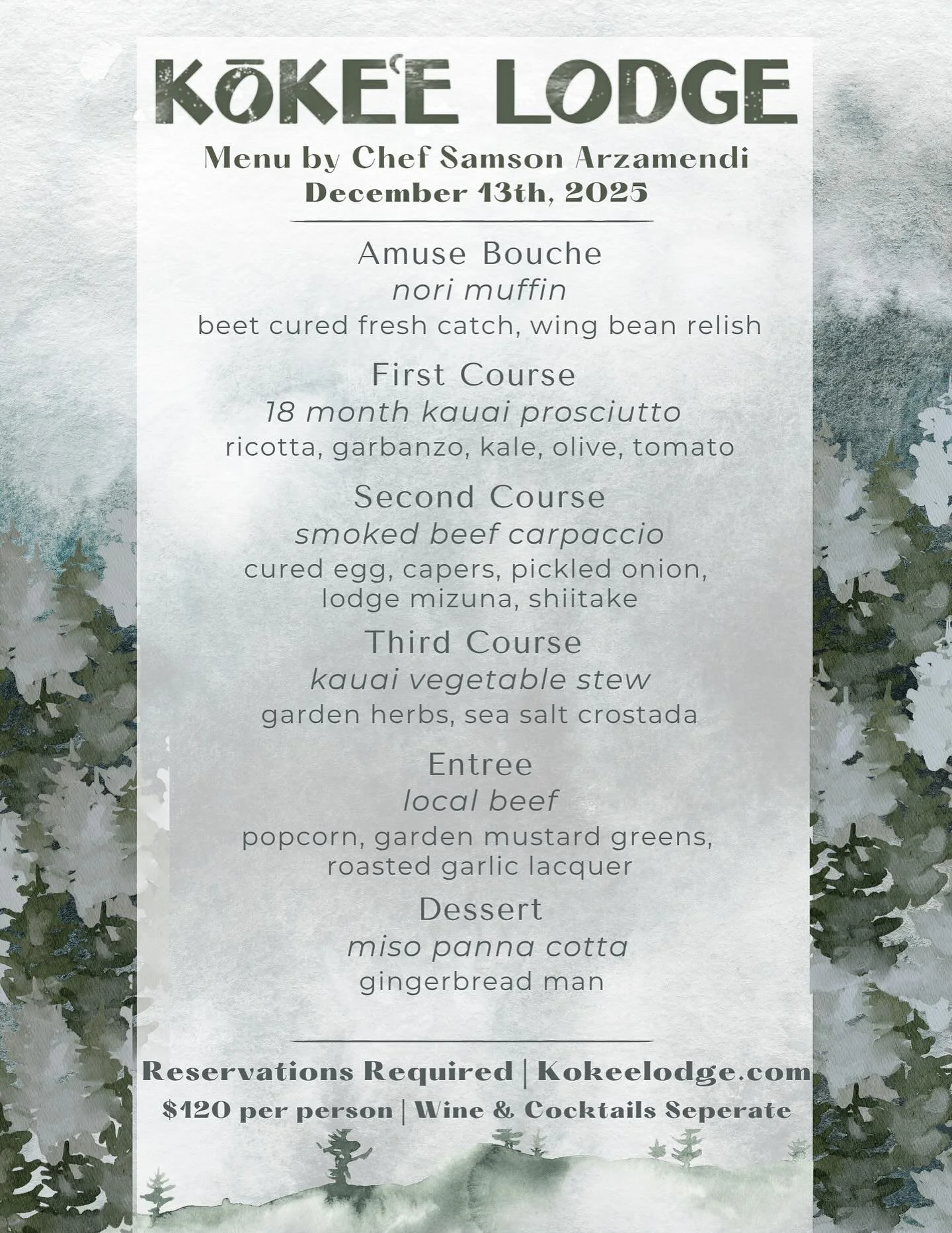 The Kōkeʻe Lodge curates a new menu every month inspired by Hawaiʻi grown ingredients.