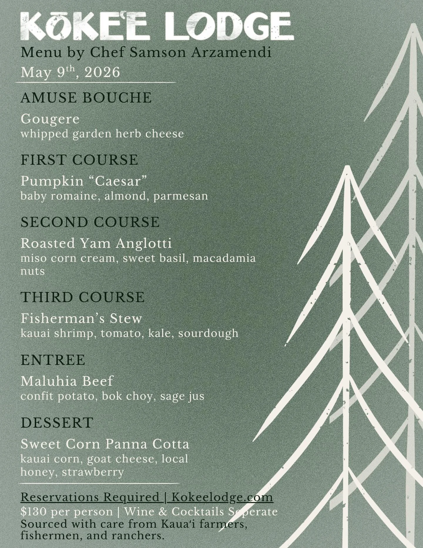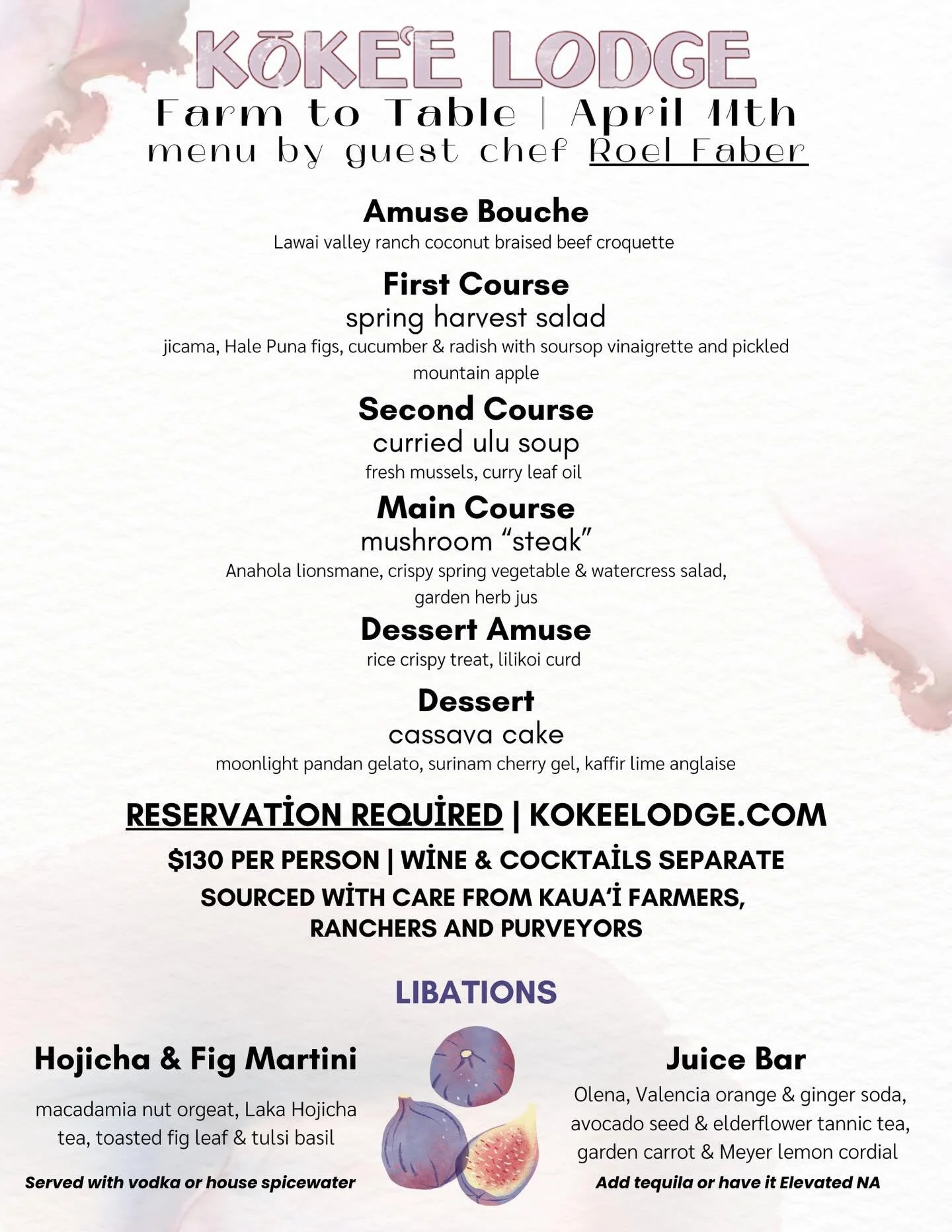 The Kōkeʻe Lodge curates a new menu every month inspired by Hawaiʻi grown ingredients.