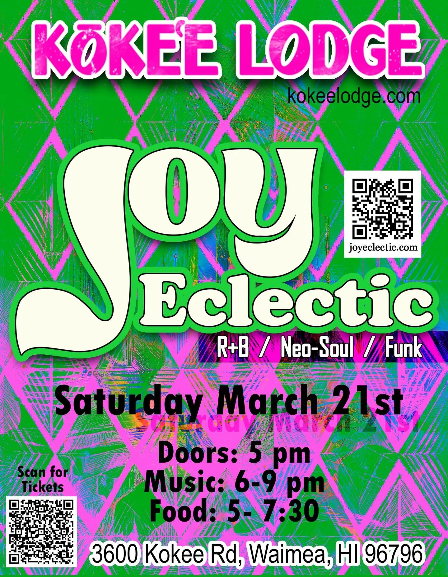 We're excited to bring back Joy Eclectic with some Neo-Soul, R & B, and Funk to the meadow on March 21st